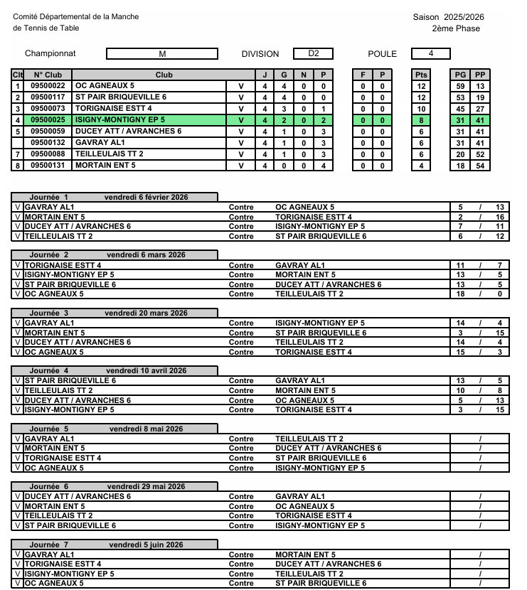 Entente Pongiste Isigny Montigny